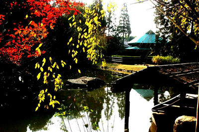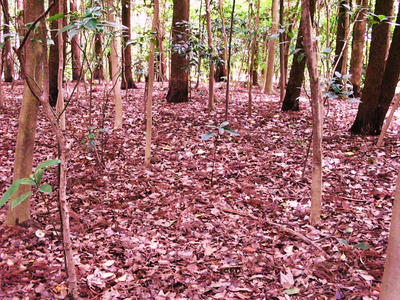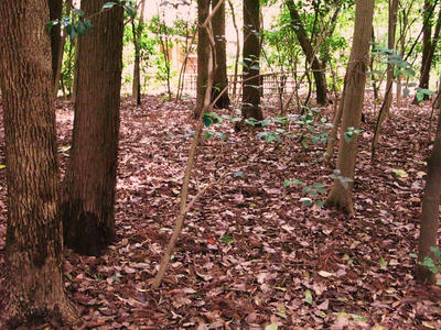 岡山後楽園の木々の間を埋めた枯葉、落ち葉の絨毯。